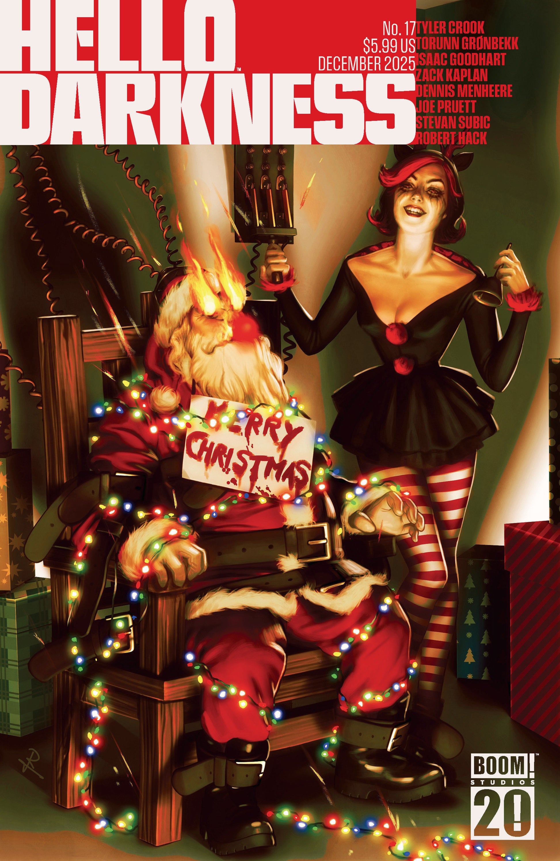 ‘Tis the season…for fearsome frights!Get ready for a gruesome stocking stuffer of Ho-Ho-Horror with these tooth-gnashing tales!Witness a dark hunger that can never be sated in “The Pothole” by award-winning cartoonist Tyler Crook.Then, take a walk down memory lane with “Recollect” by Zack Kaplan and Dennis Menheree as they unfurl a crime that cannot be forgotten and cannot be forgiven.