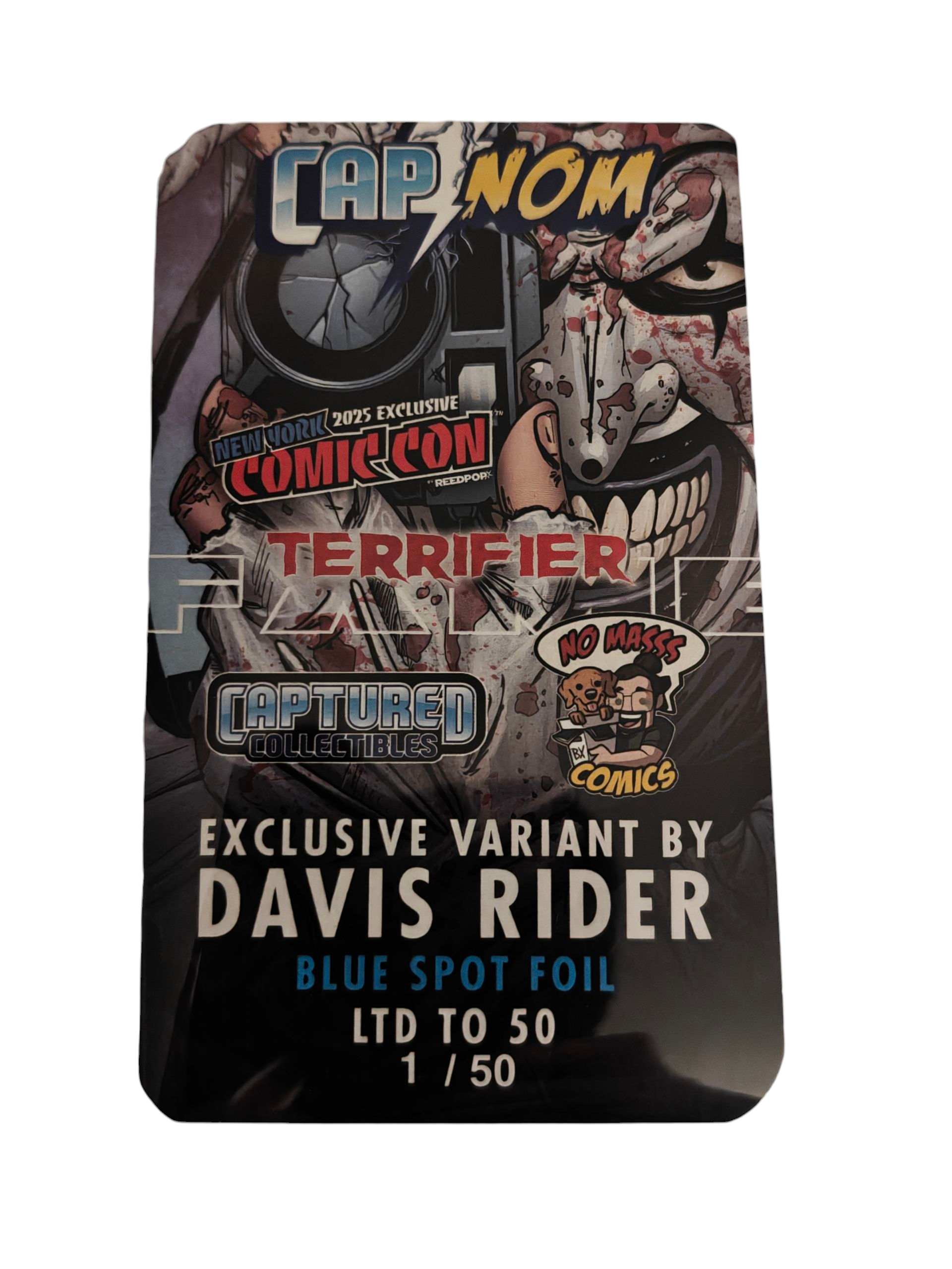 BIRTH OF A SLASHER #1 TERRIFIER DAVIS RIDER 2025 NYCC BLUE FOIL LTD 50 COA 1/50