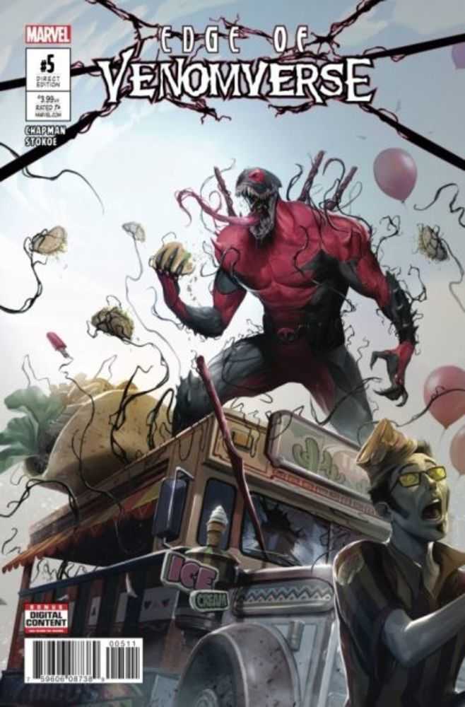 THE SYMBIOTE WITH THE SLOBBER! 'Deadpool's bonded with the Venom symbiote, blah, blah, blah,' you're saying to yourself. Well HOLD IT RIGHT THERE, TRUE BELIEVER! Bringing you a terrifying tale of VenomPool trying to save a hospital full of innocent people who've been infected with a DANGEROUS MIND-CONTROLLING PARASITE is none other than horror writer and SPIDER-VERSE veteran Clay McLeod Chapman! Still not enough? WELL DON'T TURN THAT SOLICITATION PAGE, MARVELITE! Because the House of Ideas has enlisted comics legend James Stokoe to draw this - one of the most awesome, audacious and outrageous tales in all of Marveldom! SO DON'T MISS IT! Rated T+